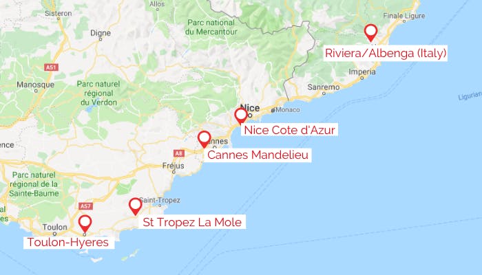 Private jet customers have a choice of airports across the area. Nice Cote d'Azur Airport is the biggest, open 24 hours and accommodates the largest jets and VIP airliners. But there are also a number of smaller airports along the coast.