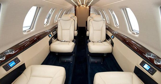 The CJ3 seats 6, like the CJ2, but it offers a roomier cabin, more windows and includes well-placed power outlets and folding tables. So it is a good choice for those who wish to work onboard.
