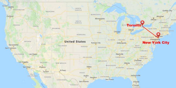 Private jet charter flights between New York City and Toronto are frequent.