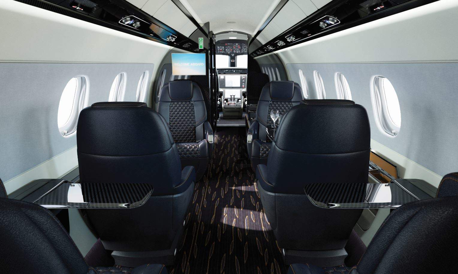 The Praetor 500's spacious cabin seats 8 passengers and has a stand-up height of 6 feet.