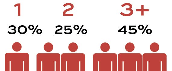 The findings demonstrate that today’s PA is no longer a role supporting one person. 70% of PAs support at least two executives, with 45% working for 3 or more bosses. PAs working in larger companies with 10,000+ employees were more likely to only support one person (46% versus 30% overall) with mid-sized companies more likely to ask their PAs to support 3 or more bosses.
