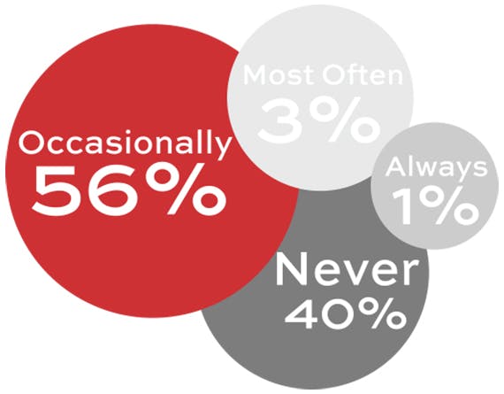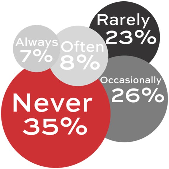 It seems that many PAs are required to book more than just business travel. 42% book holiday or leisure travel for their boss(es) at least occasionally, with 7% always doing so.